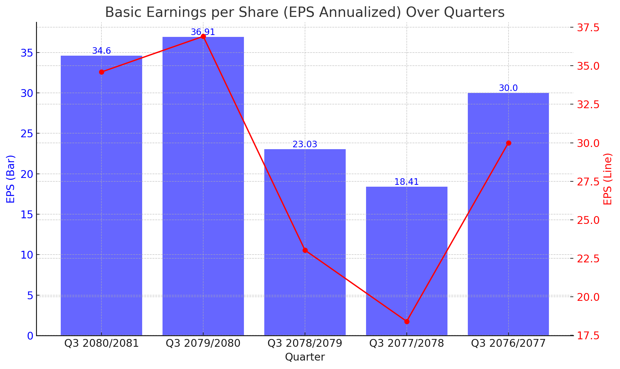 The latest quarter, Q3 2080/2081, shows an EPS of Rs. 34.6, slightly down from the peak of Rs. 36.91 in Q3 2079/2080. Despite this decrease, the company maintains a relatively high EPS compared to Q3 2078/2079 and Q3 2077/2078, where the EPS was Rs. 23.03 and Rs. 18.41, respectively. This indicates a strong recovery and growth trajectory after a dip in previous years.