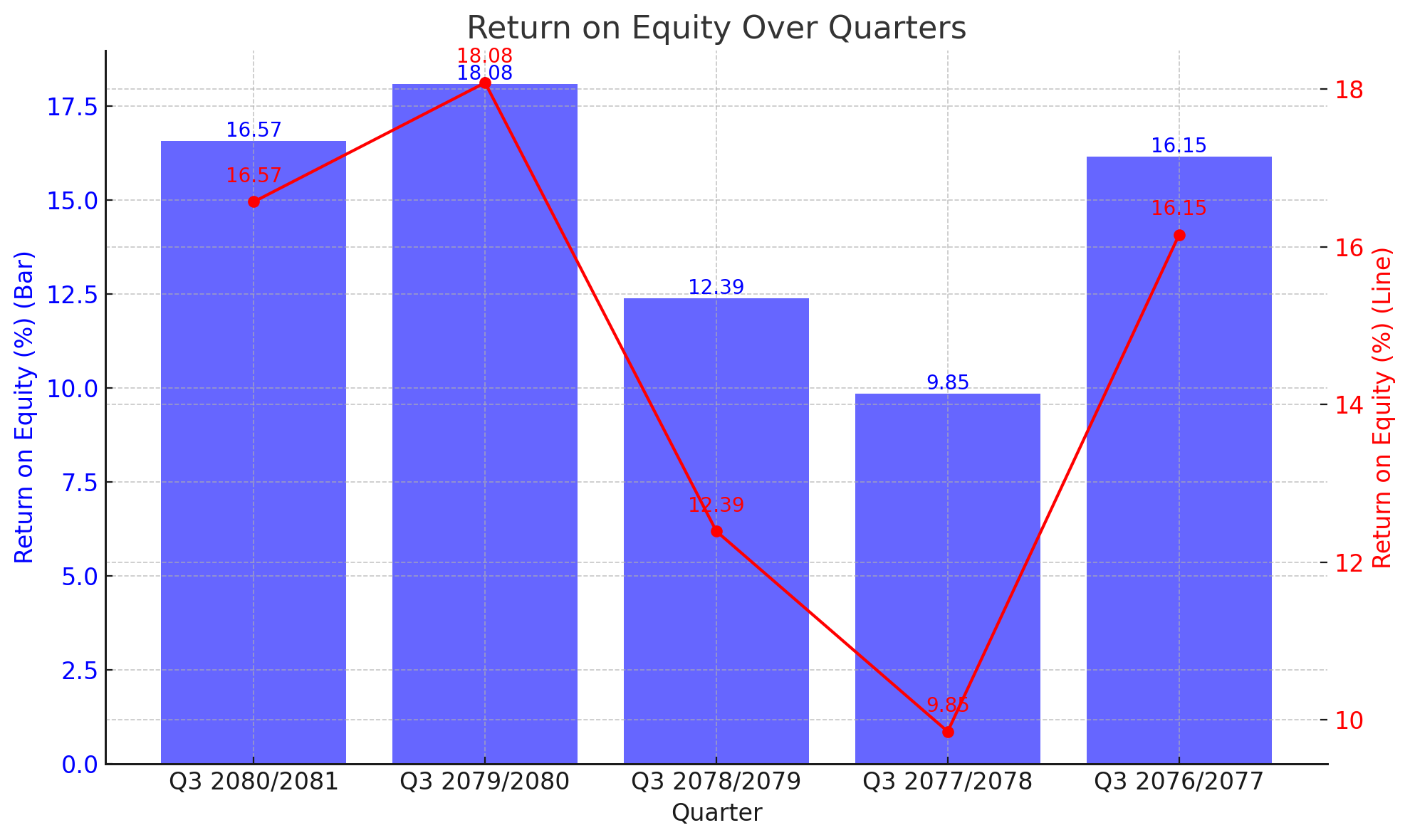 This trend highlights the bank's fluctuating yet overall strong performance in generating returns for its shareholders. The increase from Q3 2077/2078 to Q3 2079/2080 reflects effective management and operational efficiency, while the recent decline suggests potential areas for further improvement.