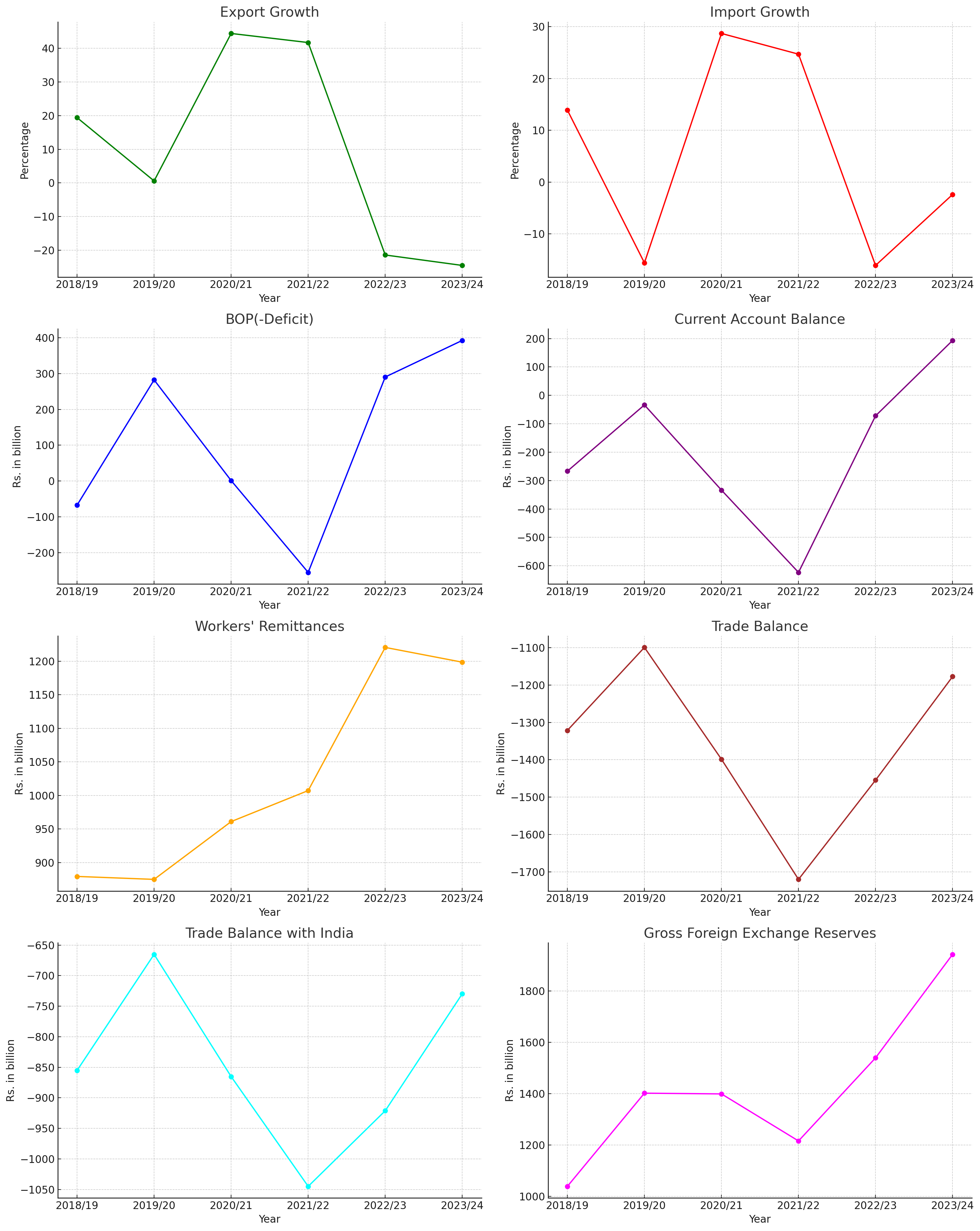 Here are the visual representations of the key indicators in Nepal's External Sector:
