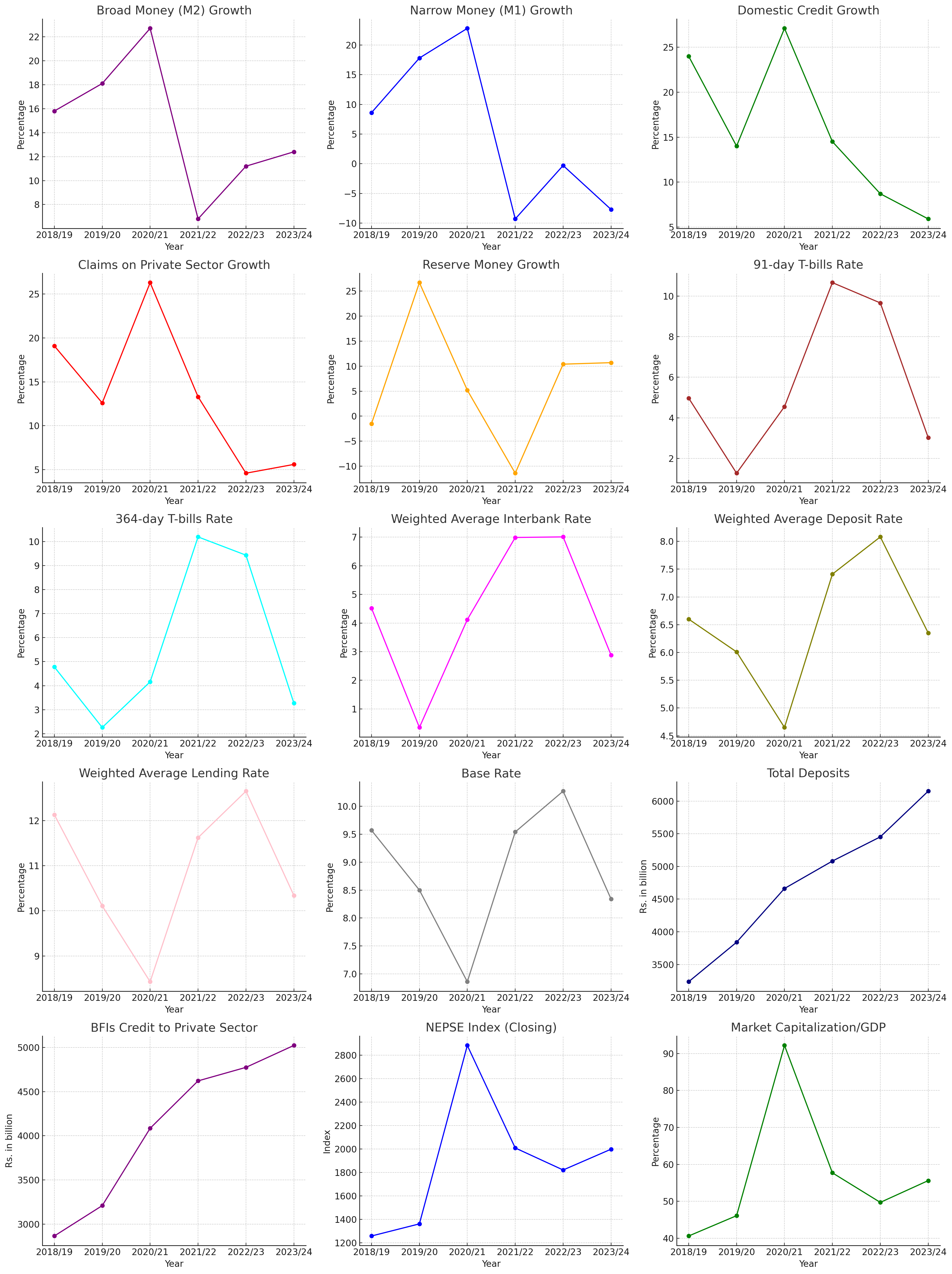 Here are the visual representations of the key indicators in Nepal's Financial Sector: