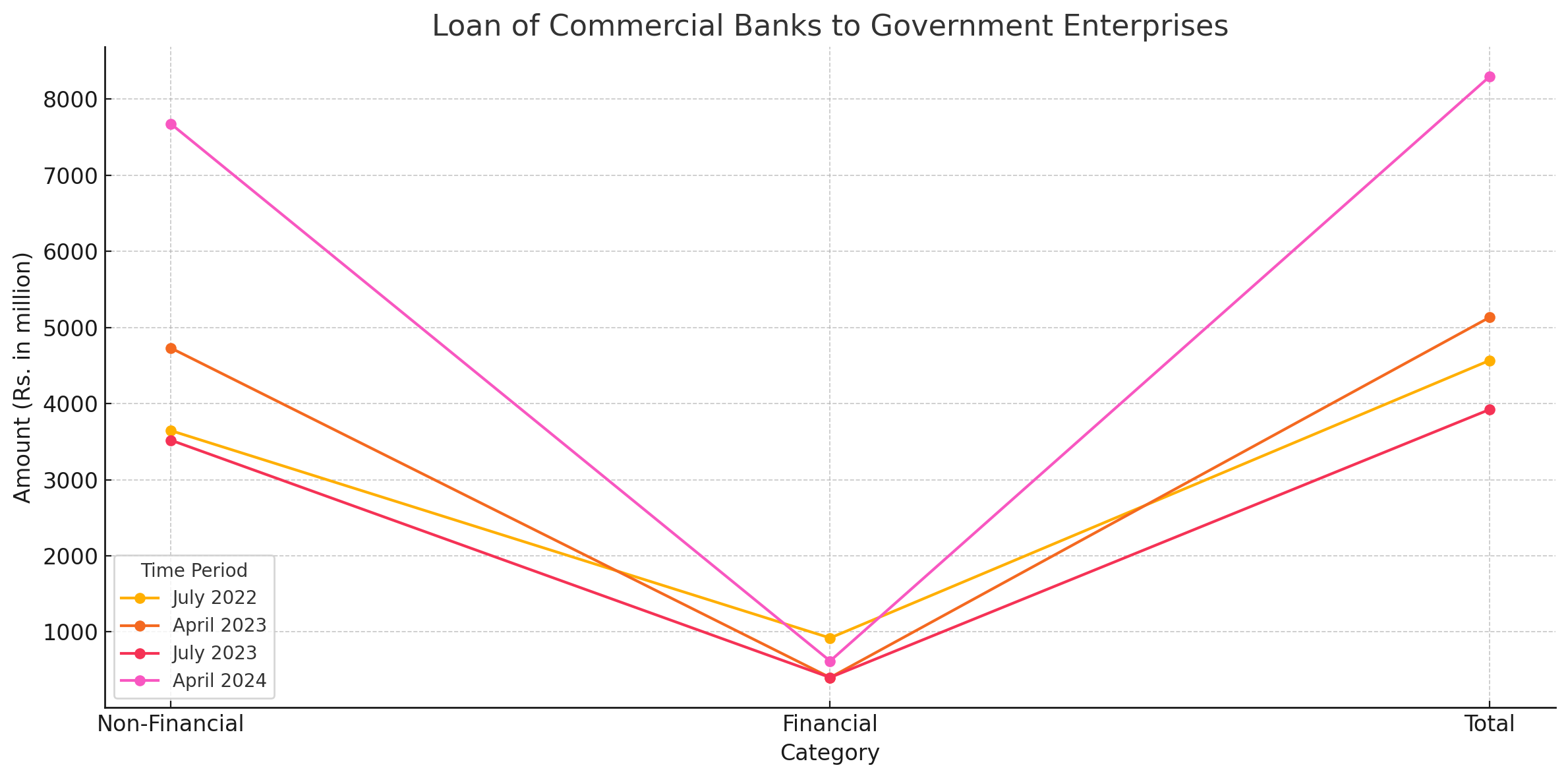 The non-financial sector experienced a remarkable increase in loans, climbing from Rs. 3,519.6 million in July 2023 to Rs. 7,675.1 million in April 2024. This translates to a 118.1% rise, a clear indication of heightened borrowing activity.