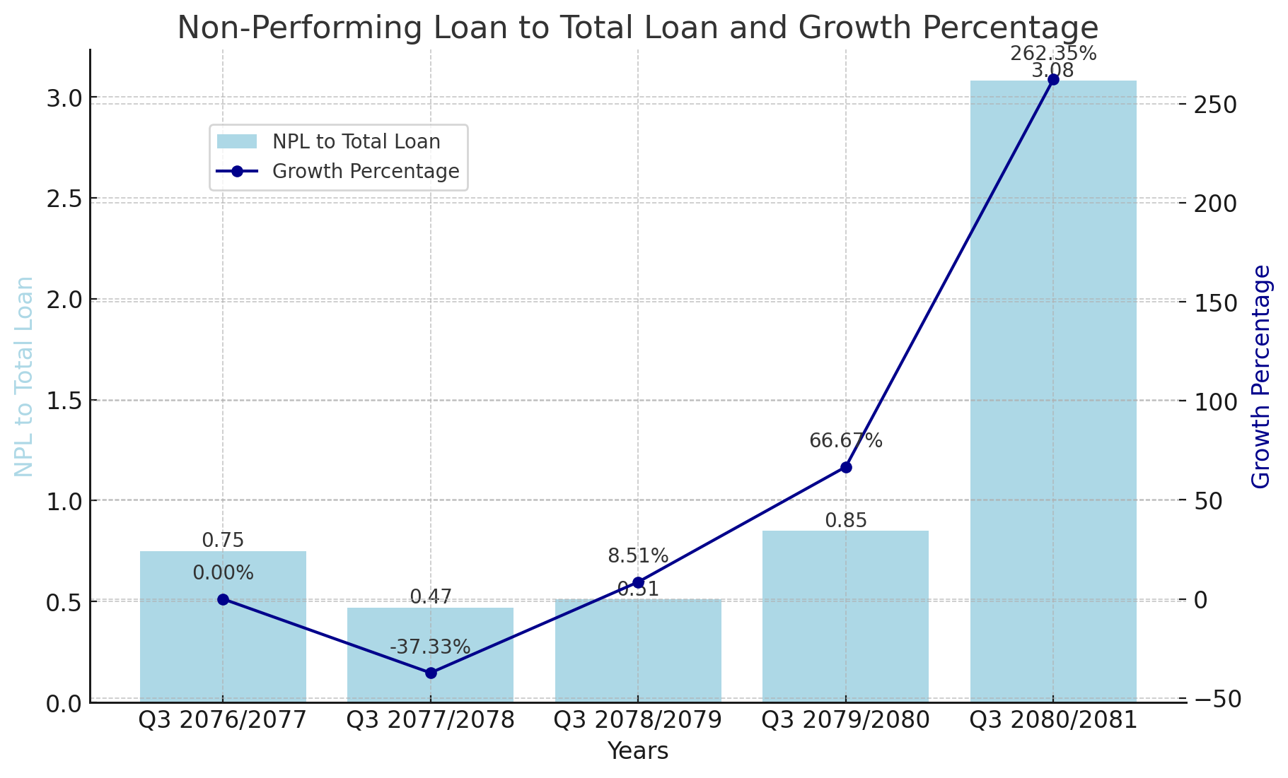 Q3 2080/2081: The NPL ratio dramatically jumped to 3.08%, an alarming increase of 262.35%.