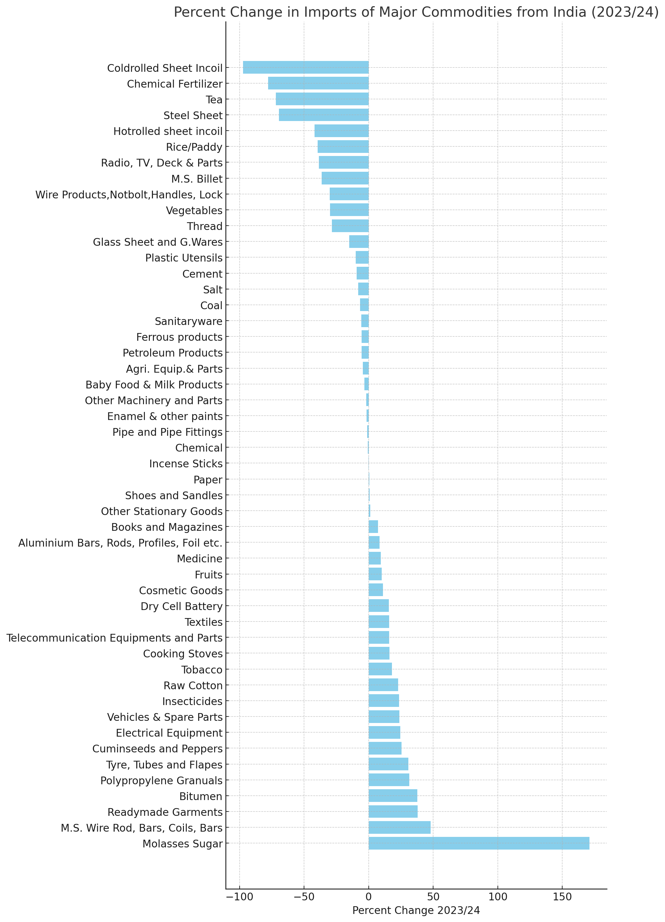 There have been mixed trends in the import of industrial inputs. Aluminium products and insecticides have shown a modest increase, indicating sustained demand in construction and agriculture. In contrast, imports of cold-rolled sheet in coils and hot-rolled sheets have plummeted, suggesting a slowdown in the manufacturing sector.