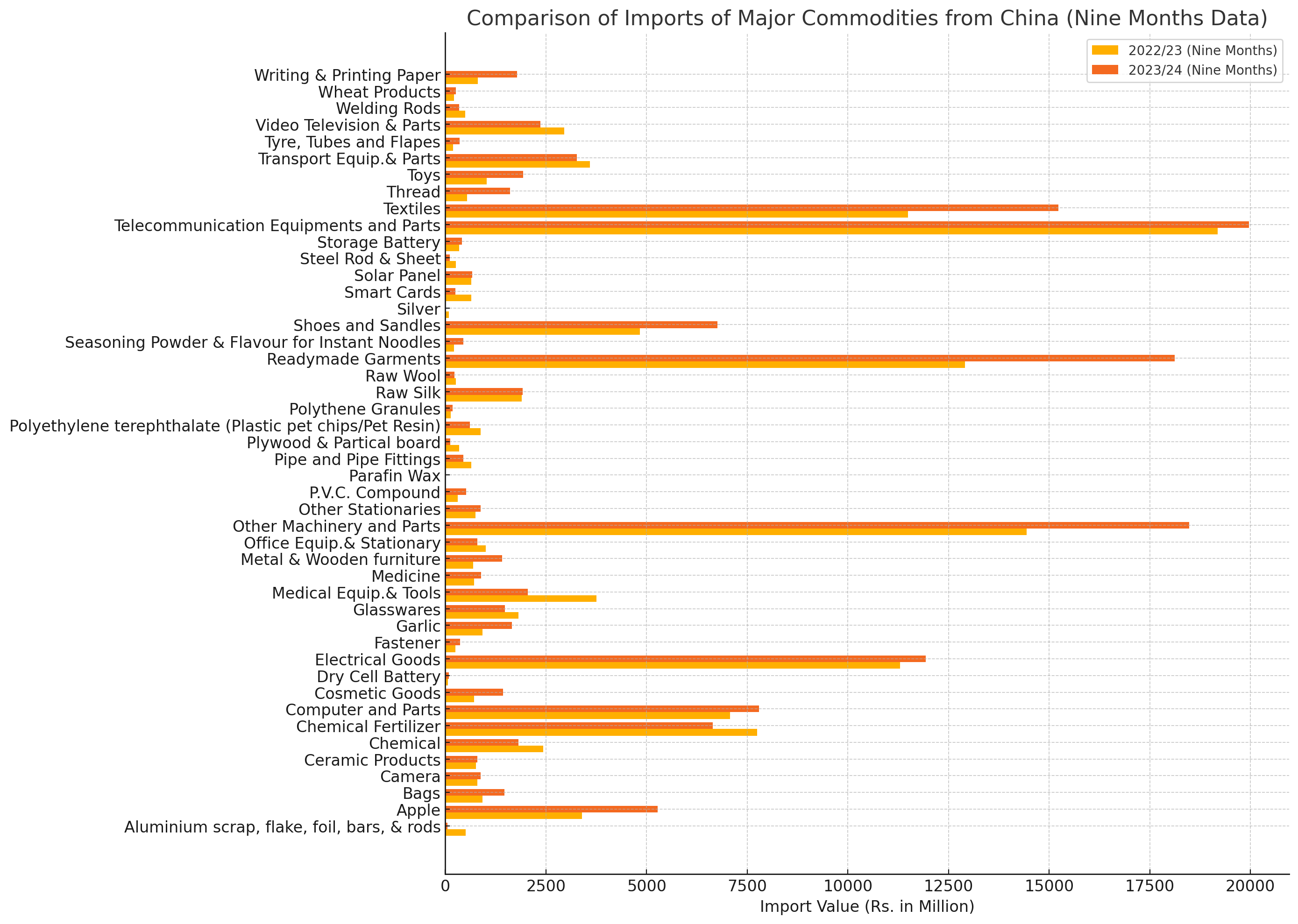 Imports of Major Commodities from China Show Diverse Trends in 2023/24