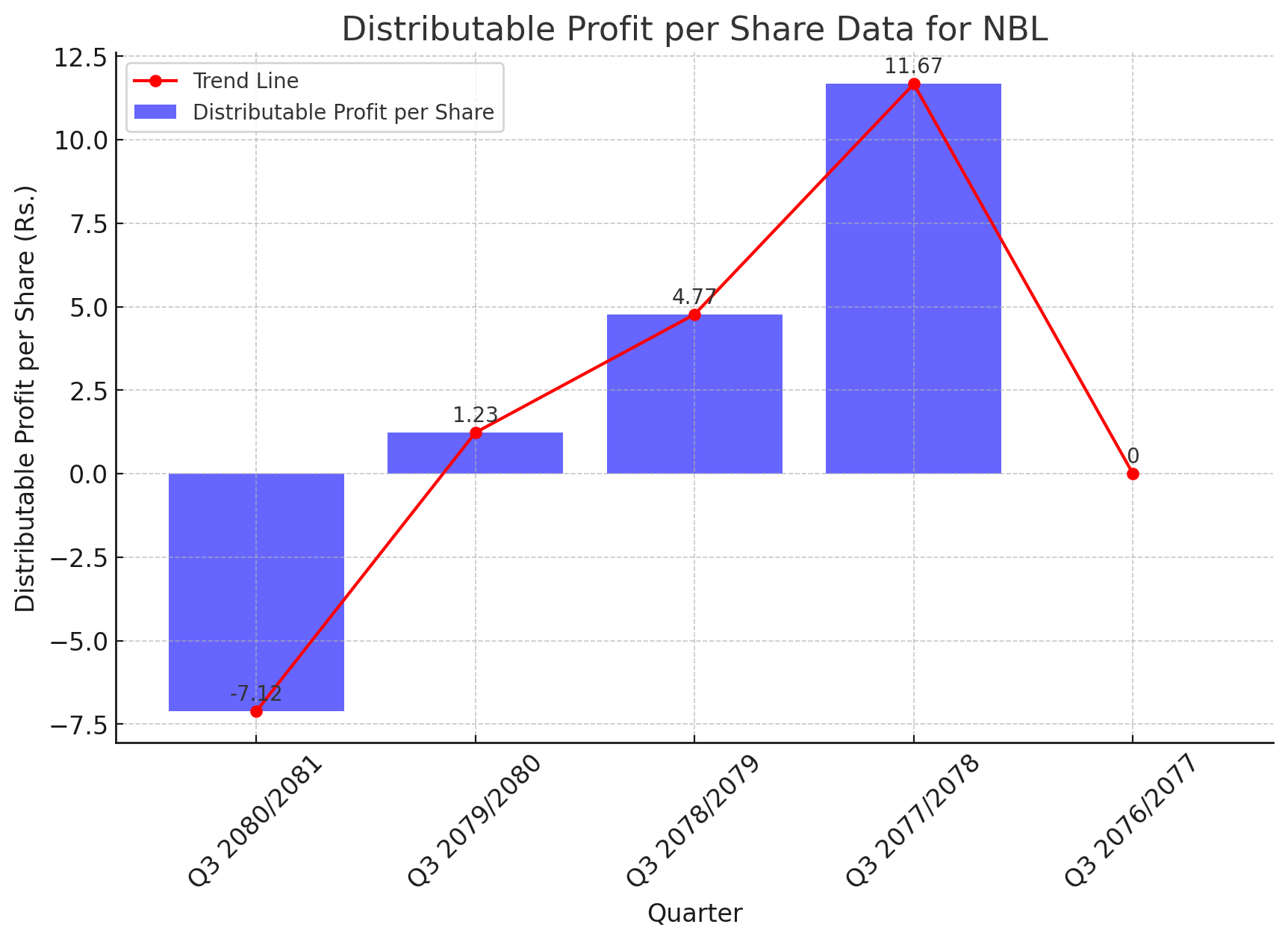 Nepal Bank Limited (NBL) has reported a concerning decline in its Distributable Profit per Share for the third quarter of the fiscal year 2080/2081. The latest data shows a negative figure of Rs. -7.12, a stark contrast to Rs. 1.23 reported in the same quarter last year. This marks a significant downturn in the bank's profitability.