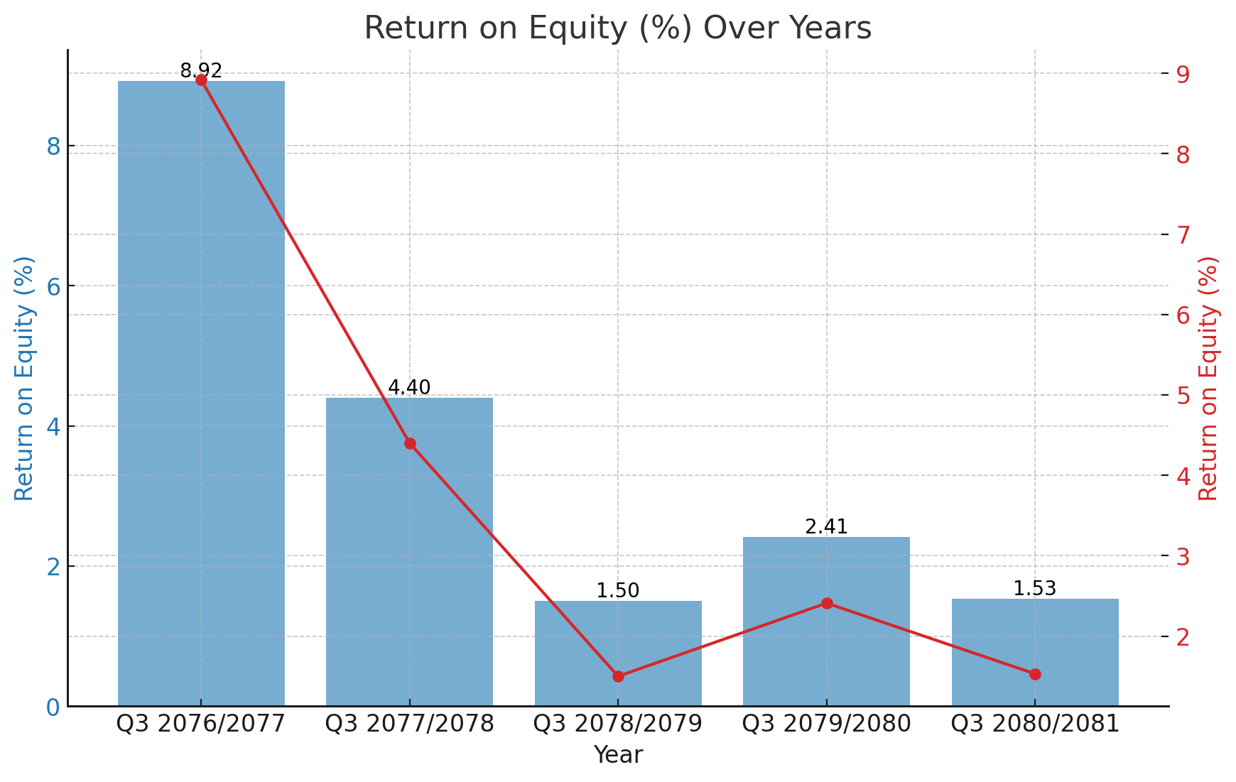 Q3 2077/2078: The ROE was 4.4%, a significant drop from earlier years but still better than recent figures.