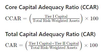 The Core Capital Adequacy Ratio (CCAR) focuses on Tier I Capital, which includes paid-up equity capital, share premium, non-redeemable preference shares, general reserves, retained earnings, capital redemption reserves, and other free reserves. This capital is the most secure and permanent, providing a robust buffer against losses.
