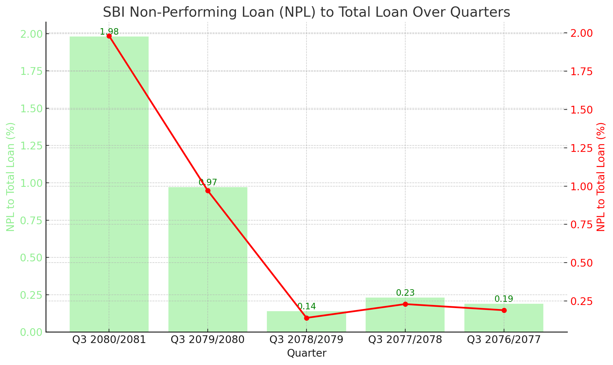 The NPL to total loan ratio for Q3 2080/2081 stands at 1.98%, marking a sharp increase from the 0.97% reported in Q3 2079/2080. This uptick suggests that SBI is facing growing challenges in maintaining the quality of its loan portfolio. Higher NPL ratios typically indicate increased defaults on loans, which can impact the bank's profitability and financial stability.