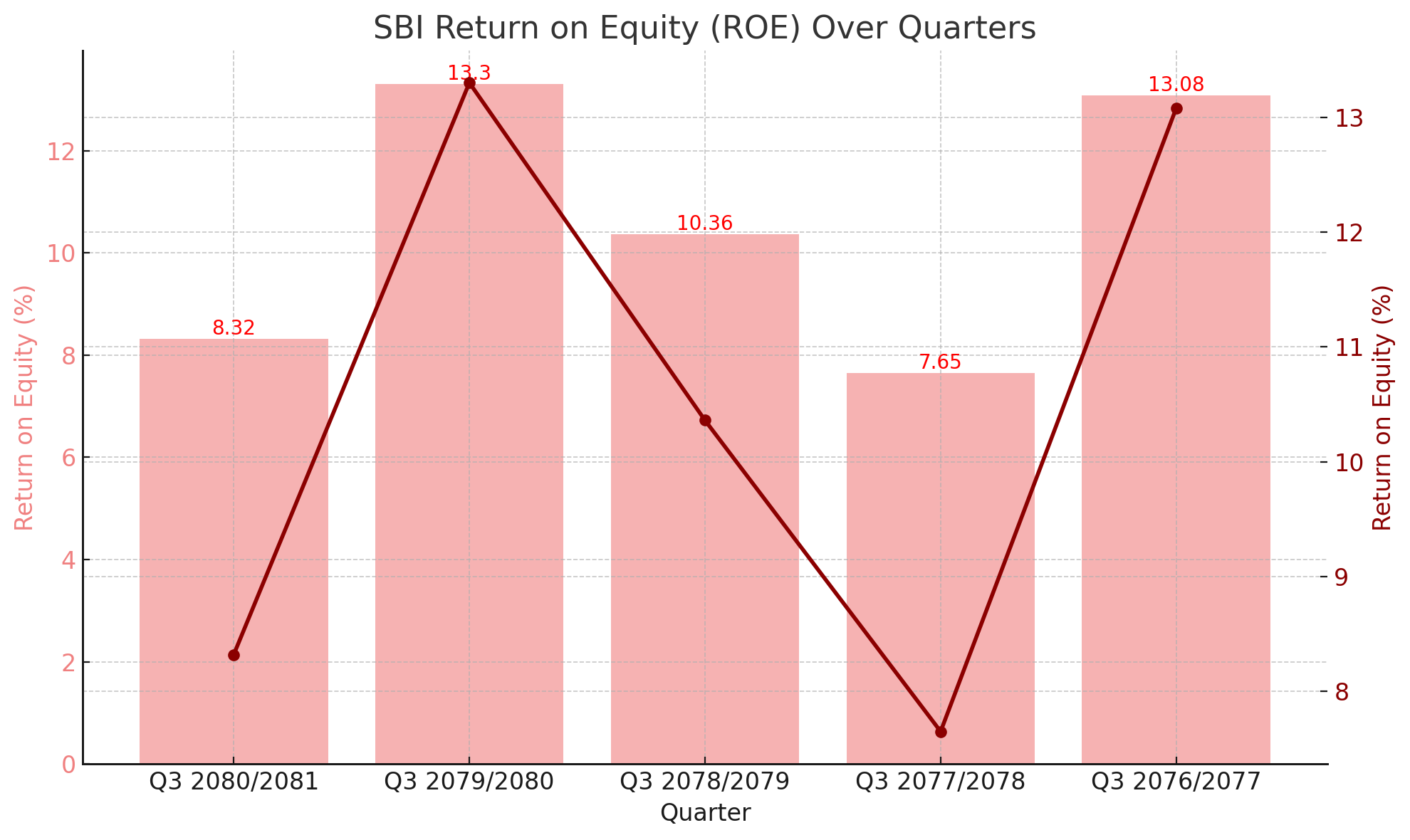 The fluctuating ROE values underscore the challenges faced by SBI in maintaining consistent profitability. A declining ROE can impact investor confidence and signal potential inefficiencies in utilizing equity to generate returns. The sharp drop in ROE for the most recent quarter suggests that SBI may need to revisit its strategies and focus on improving operational efficiency and profitability.