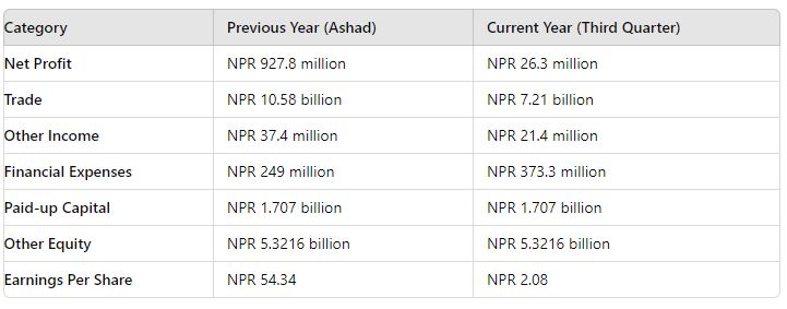 - Current Year (Third Quarter): NPR 26.3 million